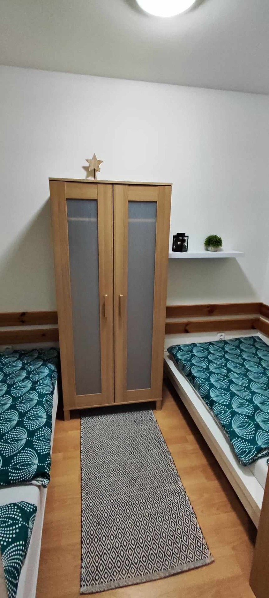 Na spanie slúžia dve spálne. V jednej sa nachádza manželská posteľ a v druhej dve samostané postele.